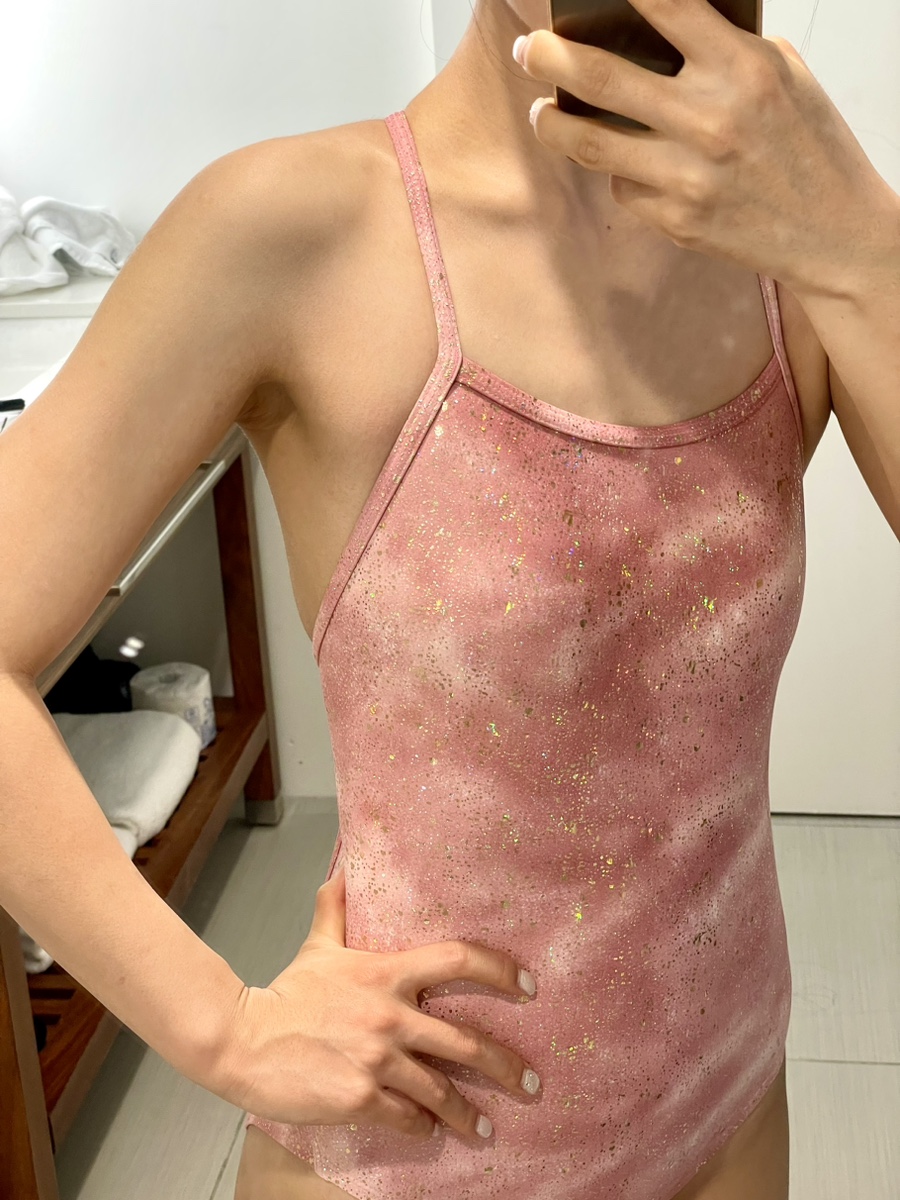 평소에도 예쁜 수영복을 좋아하는데, 핑크피치 컬러에 골드 펄이 반짝이는 디자인을 보고