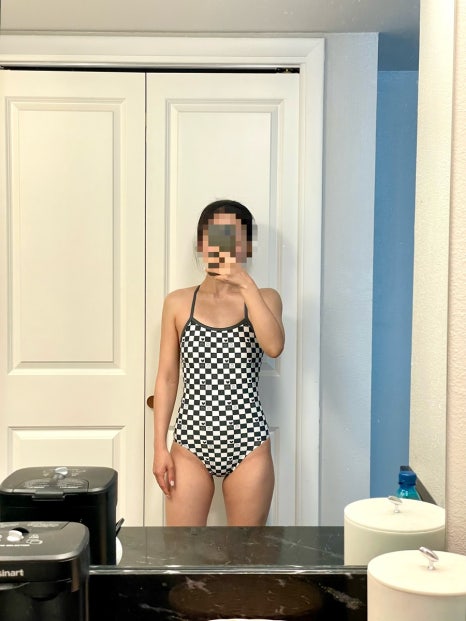 르망고 와플 버니 수영복은 전체적으로 천이 야박한 느낌이 있어요. 특히 상체 부분이 가슴선이 낮게 디자인되어 있어서 노출이 부담스러운 분들은 신경 써야 할 부분이에요. 하체 라인도 컷팅이 살짝 높은 편이지만, 그렇다고 제모가 필수일 정도는 아니어서 부담 없이 입을 수 있었어요. 다만, 부유방을 가릴 여유가 별로 없어서 신경 쓰이는 분들은 참고해주세요.